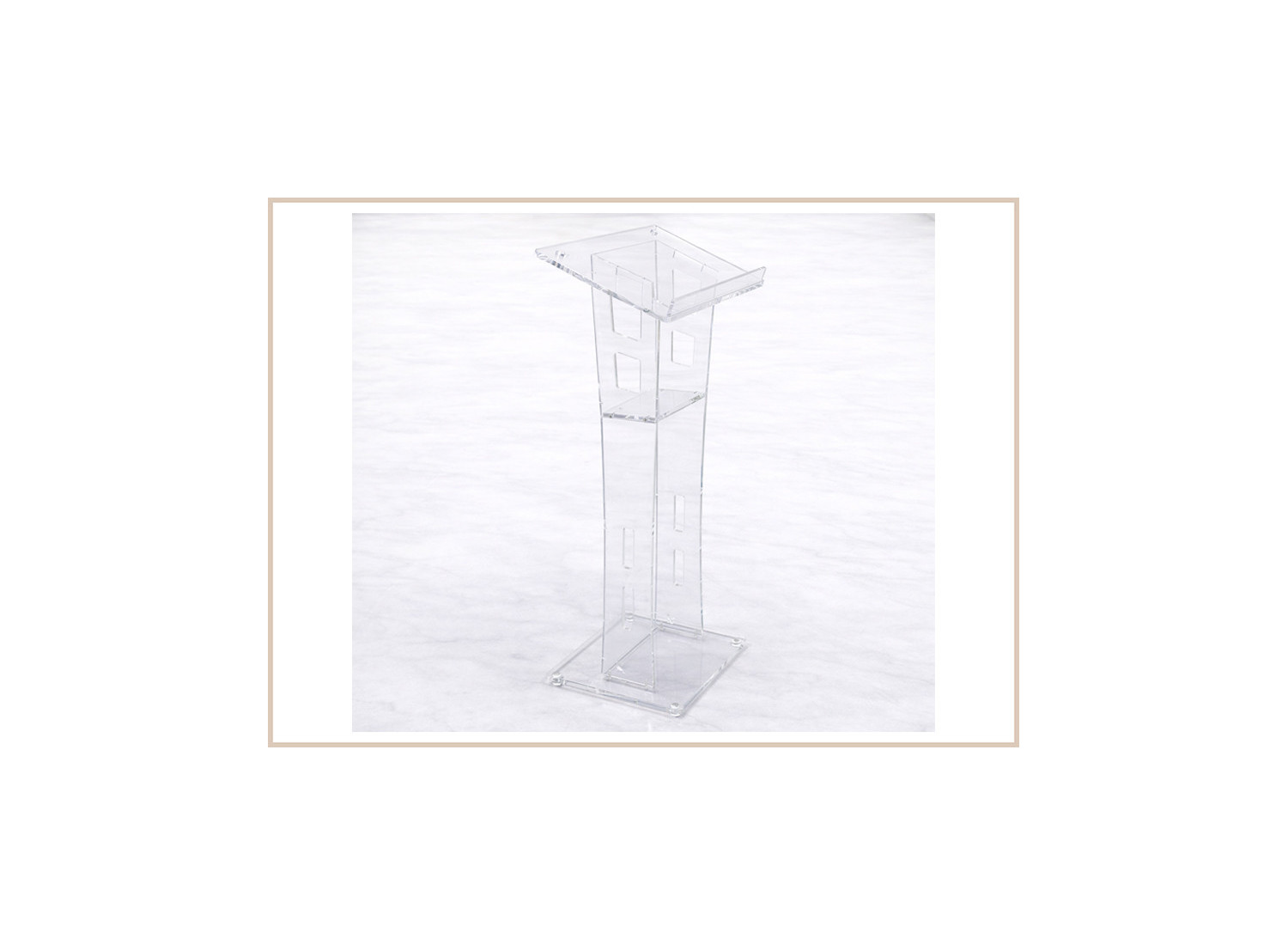 Atril fabricado en metacrilato de 15 mm. de espesor + frontal de 3mm de espesor.
