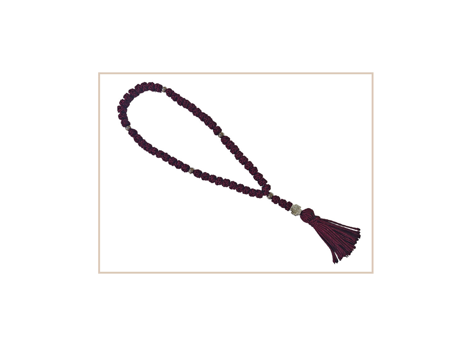 Fabricado con hilo de seda y cuentas plateadas.